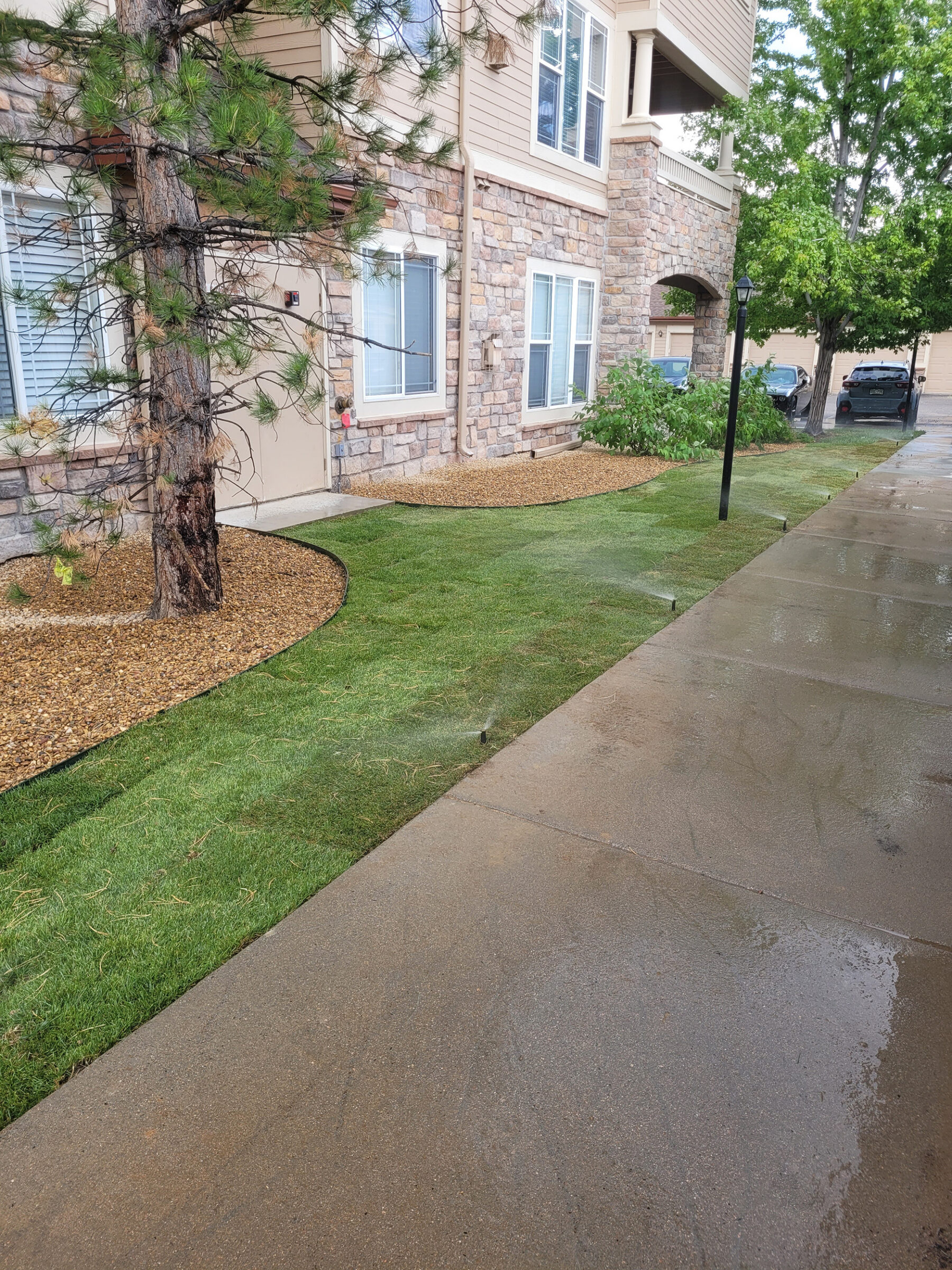 This property received a full-scale landscape transformation designed to enhance curb appeal and create an inviting outdoor environment for its residents. Our team installed lush, high-quality turf delivering a clean, manicured look that elevates the overall appearance of the community. A professionally designed sprinkler irrigation system was integrated to ensure the new turf and landscape plantings receive consistent, efficient watering year-round. Every detail of this project was executed with the long-term health of the landscape in mind, giving property management a low-maintenance solution that keeps the grounds looking their best season after season.
